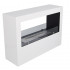 Biocamino da appoggio bianco con vista da 2 lati opposti. Dotato di un bruciatore da 3,5 litri e ha una durata di combustione fino a 7,5 ore.