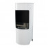 Biocamino da pavimento bianco con un bell'aspetto di una stufa a legna. Dimensioni: H: 95 x Ø 45 cm. Autonomia: 4,5 ore per. Riempimento.